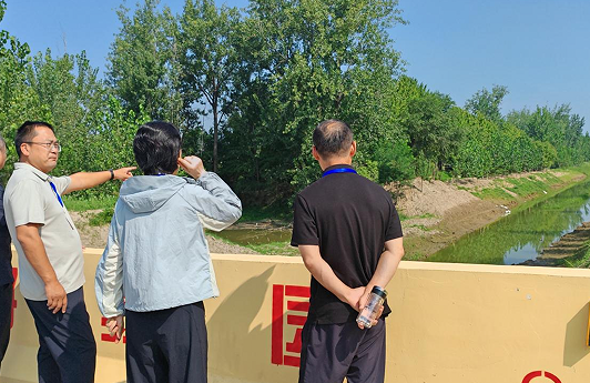 随后,调研组来到“老李寨沟”范庄桥段,实地查看并听取相关负责人介绍河道疏浚清淤、加宽拓深和坡堤加固等工程实施情况。
