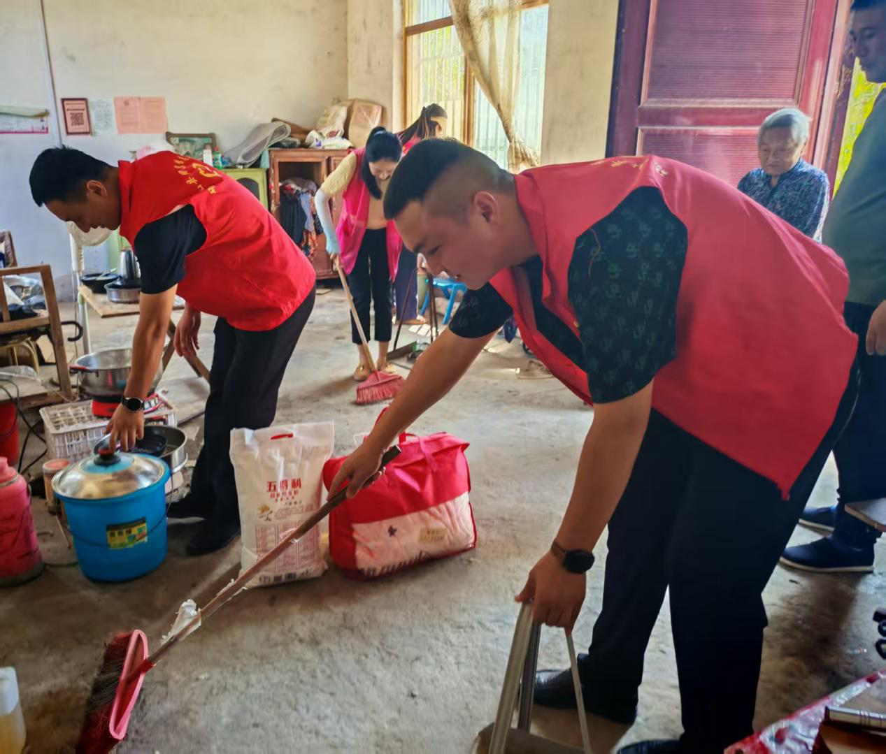 活动中,志愿者们分工协作,干劲十足。退役军人志愿者们带着军人特有的严谨与细致,仔细擦拭门窗桌椅、清扫庭院角落,将烈属家中的卫生死角一一清理干净;巾帼志愿者们则发挥细心耐心的优势,认真整理床铺、晾晒被褥,让阳光的暖意浸透每一个角落。忙碌的身影穿梭在烈属家中,原本略显沉寂的屋子因这份热忱变得热闹而温馨。