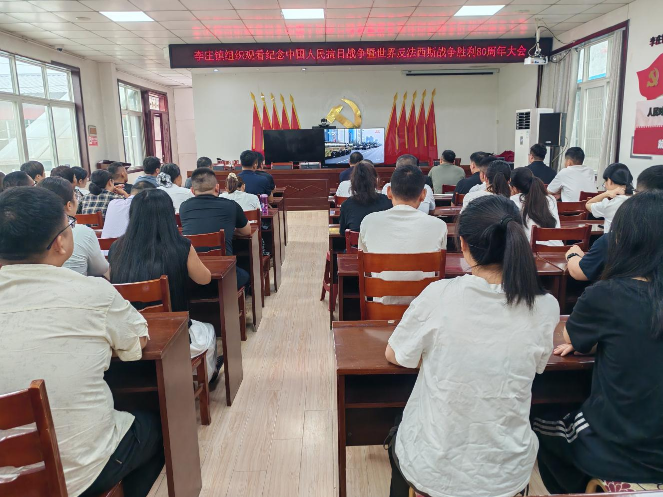 为弘扬伟大抗战精神、厚植家国情怀,9月3日上午,砀山县李庄镇分设多个会场,组织全体镇村干部集中收看了纪念中国人民抗日战争暨世界反法西斯战争胜利80周年大会现场直播,共同回顾峥嵘岁月,凝聚奋进力量。