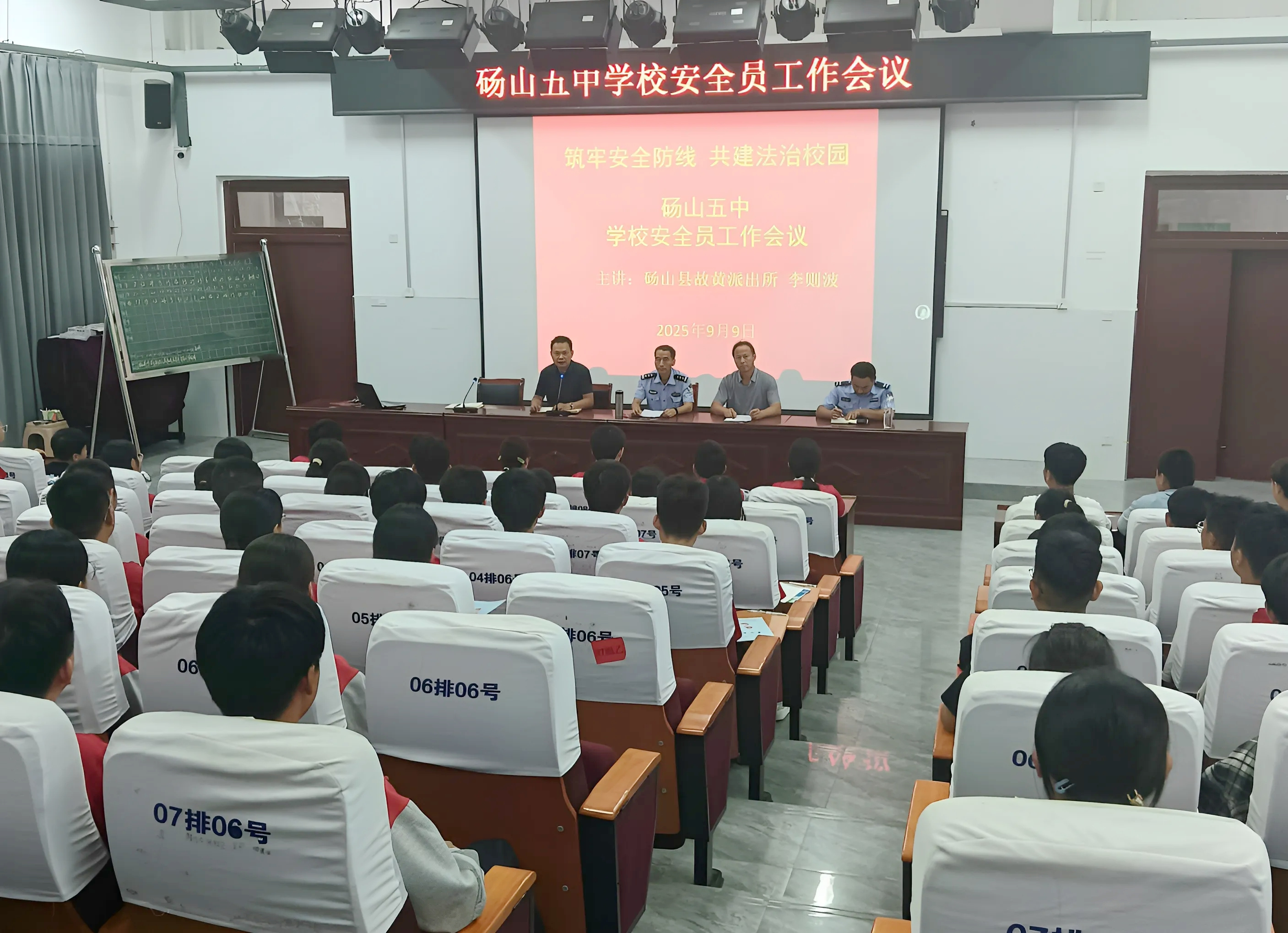 为进一步加强校园安全管理,提升学生安全员的业务能力和法治意识,营造安全、和谐的校园环境,9月9日,砀山县第五中学教育集团开展学校安全员工作培训,邀请故黄派出所李则波警官,为砀山五中学生安全员开展一场内容丰富、实用性强的专题培训。