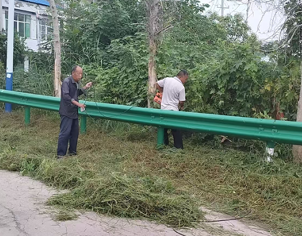 工作人员分工协作,采用人工与机械相结合的方式,重点清除影响绿植生长、遮挡交通视线及存在火灾隐患的高大杂草和枯枝败叶。同时,对绿化带内垃圾杂物进行全面清理,确保环境整洁有序,有效改善了镇域整体绿化面貌。