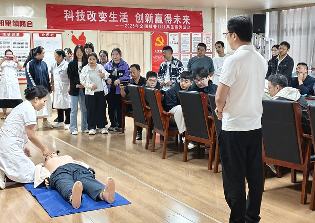 活动现场,淮北市张庄医院的医务工作者为企业员工带来一场生动且实用的急救知识科普讲座,详细讲解了心肺复苏和海姆立克等急救技能,并辅以现场演示和互动教学。此外,医务工作者还提供健康义诊和咨询服务,针对员工们的健康问题进行耐心解答,给予专业的健康建议。科普志愿者则向企业员工发放食品安全、防灾减灾、垃圾分类等科普宣传资料,以及环保袋等科普宣传物品。