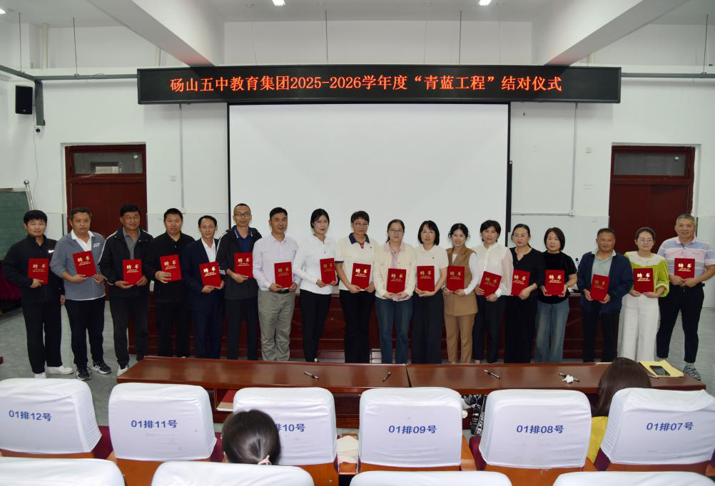 9月18日下午,砀山县第五中学教育集团“青蓝工程”结对仪式在校启智楼一楼会议室举行,标志着该校新学年“青蓝工程”正式启动。