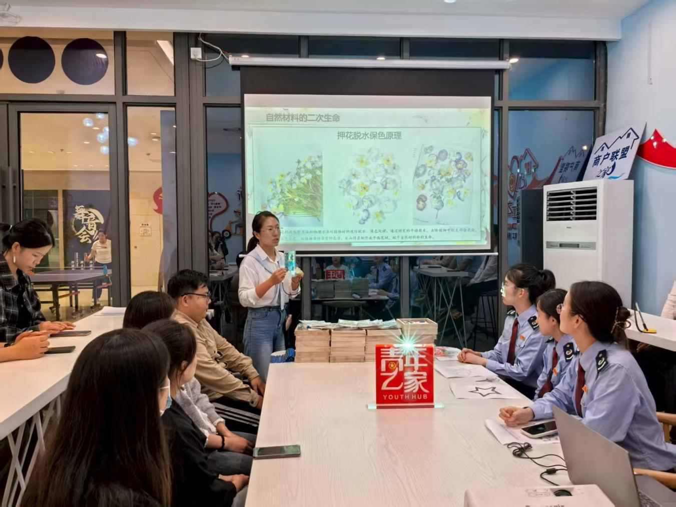 活动伊始,淮北理工学院张晓婷老师以生动有趣的讲解,带领青年朋友们走进岭南押花的世界。她从岭南押花的历史起源讲起,细数这门非遗技艺从古代民间装饰手法,到如今成为文化传承载体的发展历程,让在场青年对这项技艺的文化底蕴有了初步认知。随后,张老师聚焦制作技巧,通过实物演示与分步讲解,细致拆解干花挑选、色彩搭配、构图设计、胶水粘贴等关键步骤,确保每位参与者都能精准掌握操作要点。