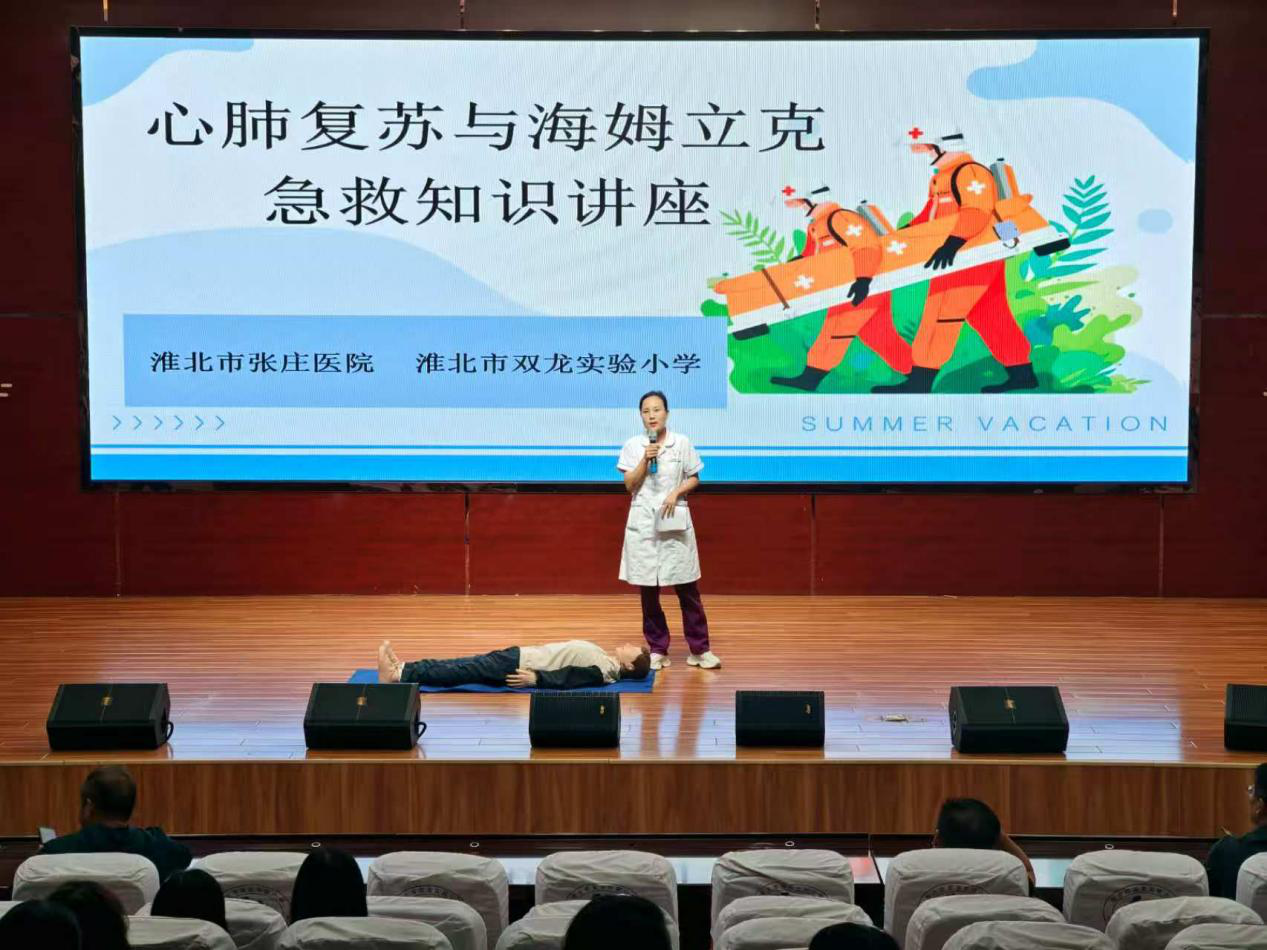 活动现场,淮北市第三实验小学的学生们精彩呈现了科普剧《科学之光耀中华》和《矿区的绿色新生》。通过生动有趣的表演形式,展现了科学家们勇于探索、敢于创新的精神风貌,让青少年们在欢声笑语中领悟科学精神的真谛,激发他们对科学探索的兴趣和热情。同时,淮北市张庄医院的医护人员通过现场演示和互动教学,向老师们传授了心肺复苏、海姆立克等急救技能。通过模拟演练和现场指导,大家掌握了基本的急救技能。