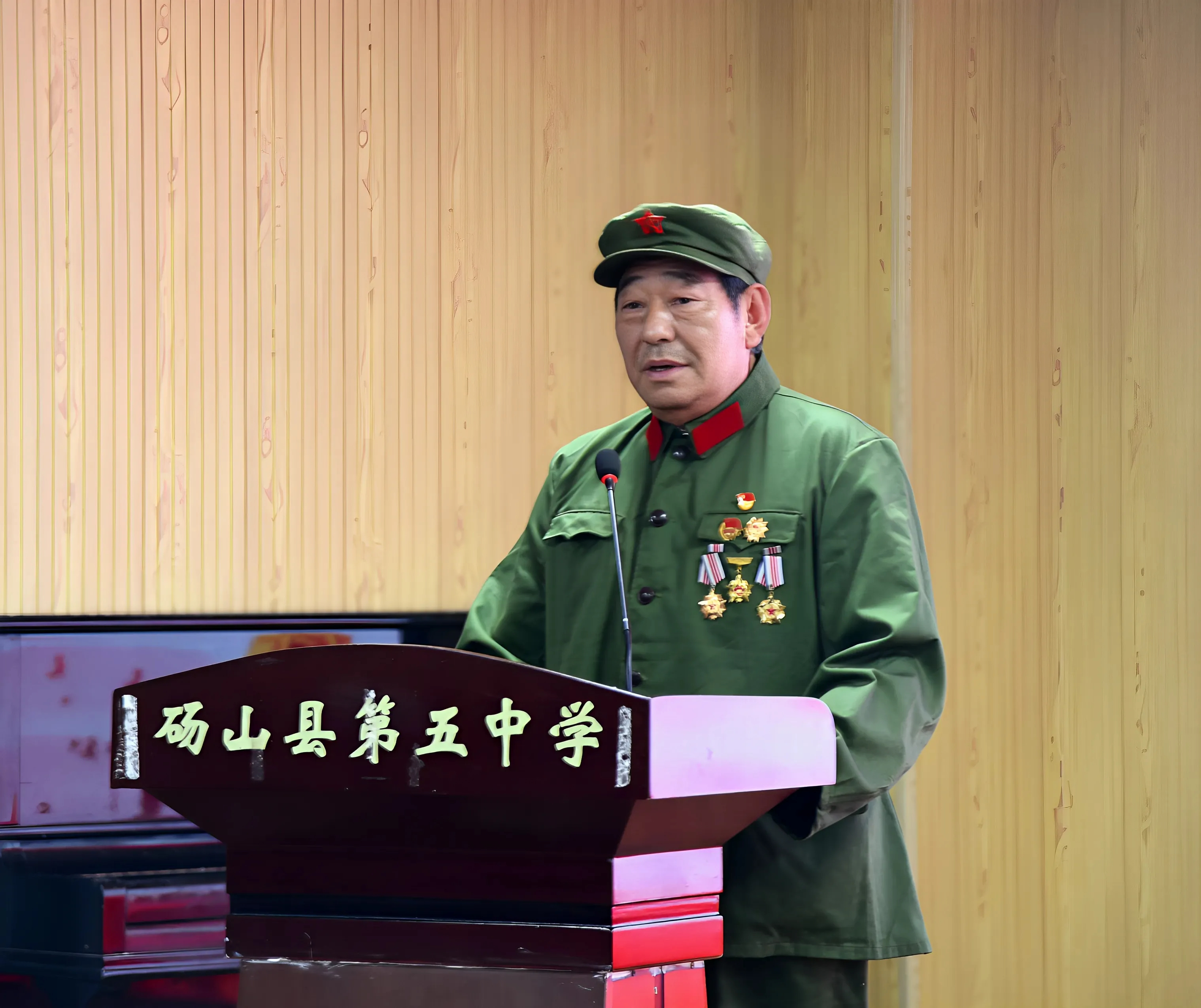 “在抗美援朝战场上,杨根思连长指挥志愿军战士顽强抗击,接连击退美军在飞机、大炮掩护下的8次集团冲锋。最后,阵地上只剩下杨根思和另外两名伤员,子弹也打光了。这时,又有40多个美军士兵围攻上来。杨根思命令伤员带着重机枪撤下阵地,自己从容地抱起仅有的一包炸药,拉燃导火索,纵身扑向敌群,与爬上阵地的美军同归于尽……战后,志愿军总部授予杨根思‘特级英雄’荣誉称号,并命名连队为‘杨根思连’。”“卫国英雄连”杨根思连第十五任连长、砀山县公安局关工委副主任李君杰,向师生们生动讲述了杨根思连长在抗美援朝战争中坚守阵地、奋勇杀敌的壮烈历程,并深入解读了杨根思的“三个不相信”精神,即“不相信有完成不了的任务,不相信有克服不了的困难,不相信有战胜不了的敌人”,让在场师生深刻感悟到革命先烈的坚定信念与无畏担当。