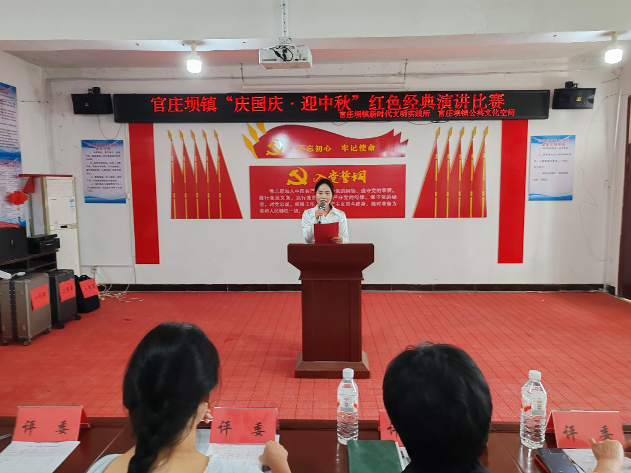精心筹备,营造浓厚文化氛围,此次演讲比赛是官庄坝镇盘活公共文化空间资源、丰富群众精神文化生活的重要举措。赛前,镇文化站联合各协办单位精心策划,从赛事流程设计、选手选拔培训到现场布置,均围绕“红色传承”与“双节团圆”主题展开。