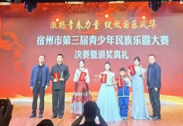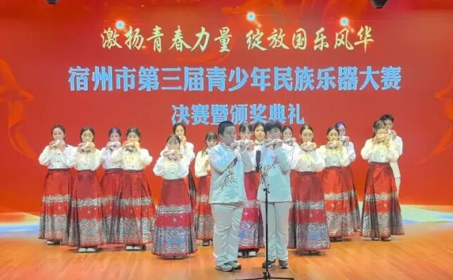 10月12日下午,宿州市第三届青少年民族乐器大赛在市文化艺术中心圆满落幕。我校高新校区陶笛乐团以一曲《万疆》合奏惊艳全场,从16组参赛队伍中脱颖而出,斩获少年组一等奖第一名,为校争光。