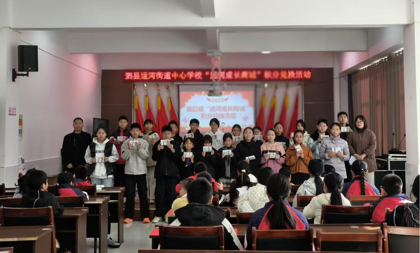 此次“运河成长银行”积分兑换活动,是泗县运河街道中心学校践行“五育并举”教育理念、深耕运河文化育人的生动实践。这场充满仪式感的活动,既是对学生一学期成长的肯定与嘉奖,更是新成长征程的美好开端。学校将继续深挖运河文化内涵,创新育人载体,为每一位“运河成长少年”搭建更广阔的成长舞台,助力他们在传承运河精神的道路上,绽放出更加耀眼的光芒!