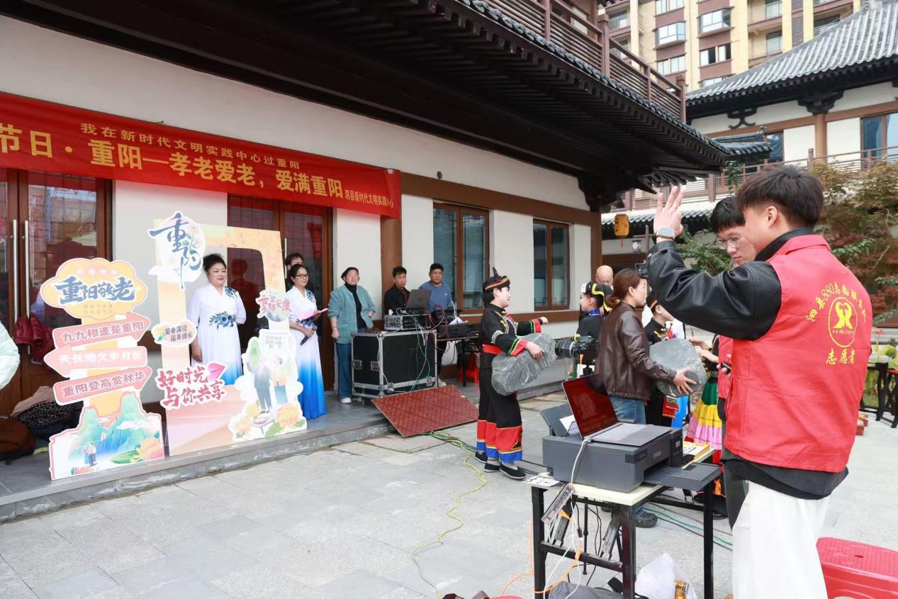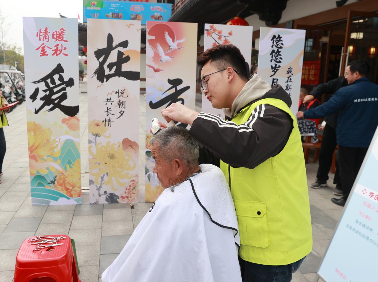 最富生活气息的,永远是便民服务区。在理发摊位前,义工协会志愿者们手法娴熟,精心为老人们修剪出清爽利落的发型,“剪完头发,感觉年轻了十岁!”刚理完发的周大爷显得精神焕发,他照着镜子,满意地直咧嘴。而在“夕阳映像定格美好”免费拍照点,许多老夫妻、老姐妹相约而来。72岁的陈大爷和老伴穿着干净整洁的衣服,在志愿者引导下,略显紧张又满是幸福地对着镜头。“好了,看这里,笑一笑!”快门按下,一张洋溢着笑容的合影即刻打印出来。陈大爷拿着还带着余温的照片,端详了许久,眼角泛起了泪花:“多少年没正儿八经拍过照了,这张拍得真好,得让孩子们都看看。”一张张小小的照片,定格了他们幸福的晚年瞬间,也成为了这个重阳节最温馨的纪念。