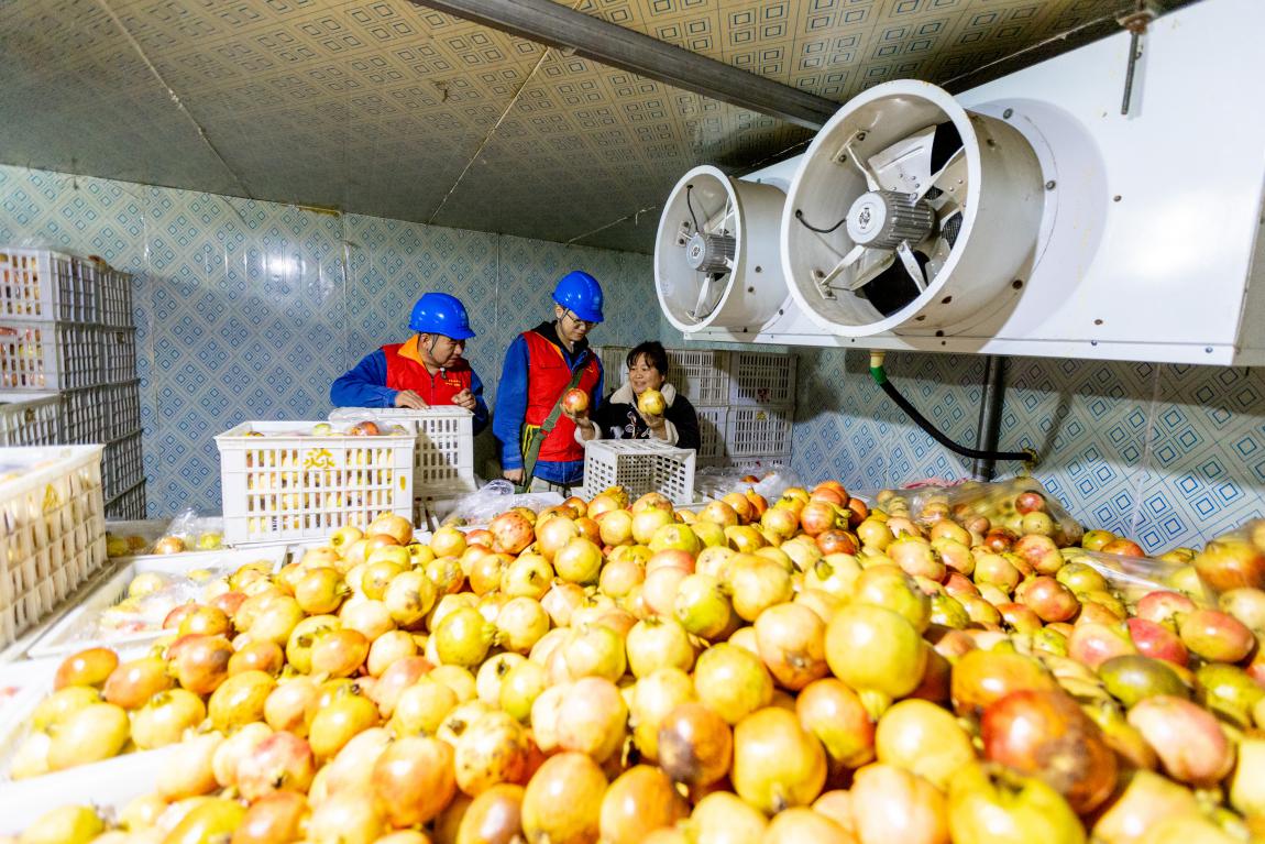 “燕飞来”志愿者服务队队员排查石榴种植户冷库用电隐患。王磊 摄影