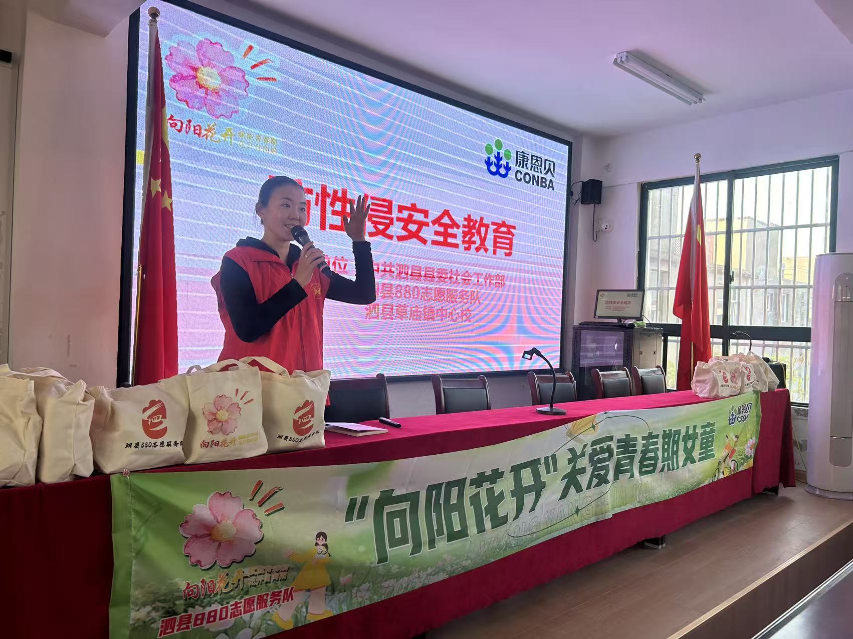 10月27日,泗县县委社会工作部带领880志愿服务队走进泗县草庙镇中心学校,为五、六年级女生开展了一场以“向阳花开”为主题的防性侵安全教育讲座,同时为每位女生发放了精心准备的“爱心小包”,用行动守护花季成长,传递社会温暖。