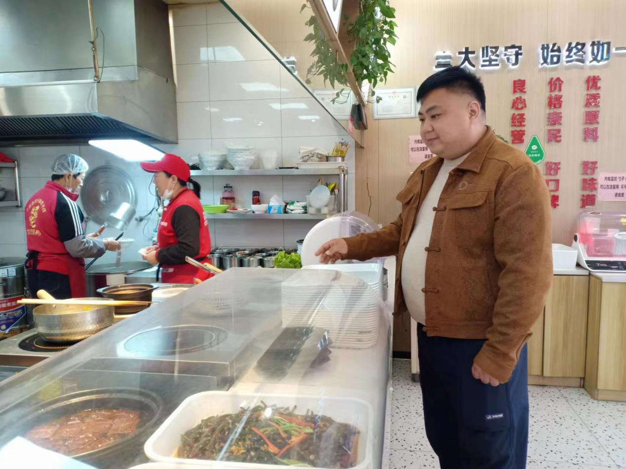 10月27日中午,徐萌像往常一样在店里忙碌着,此时也是店里生意繁忙的时候。12时12分许,一位大爷手托餐盘想从吧台回到坐位,没想到没有拿稳,“啪”的一声将刚点的饭菜洒了一地。食客们目光一下子聚拢过来,老人愣在原地手足无措。徐萌闻声跑过来一边查看老人是否受伤,安抚老人情绪,一边安排服务员清理现场,随后又安排厨房重做了相同的一份饭菜亲自端到了老人面前。