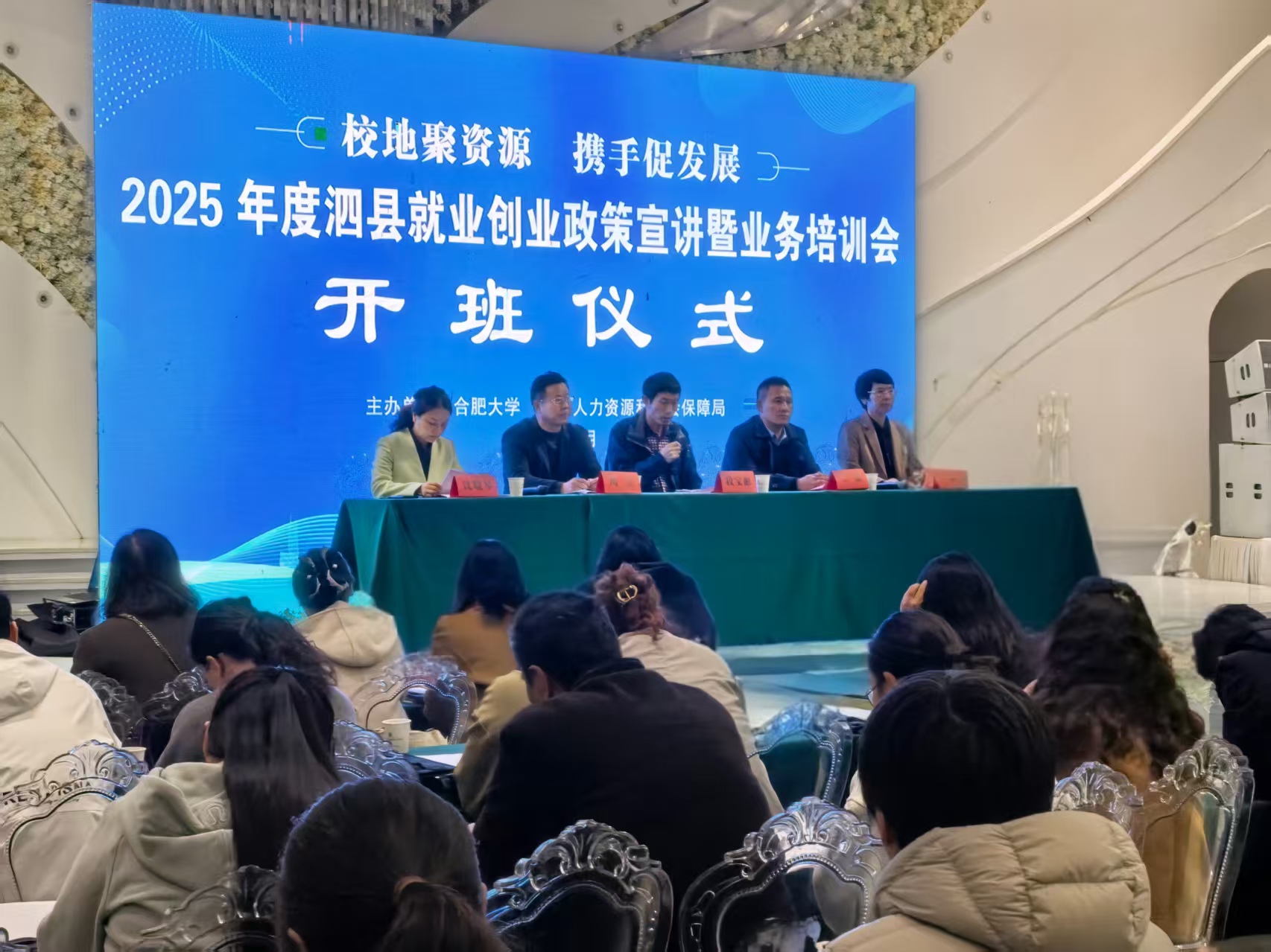 为深化校地合作、共促就业创业,10月30日,在合肥大学的大力支持与积极协调下,特别是在该校后勤保障与校园建设处处长、派驻我县山头镇惠庙村第一书记周全同志的推动下,“校地聚资源 携手促发展”——2025年度泗县就业创业政策宣讲暨业务培训会顺利举行。