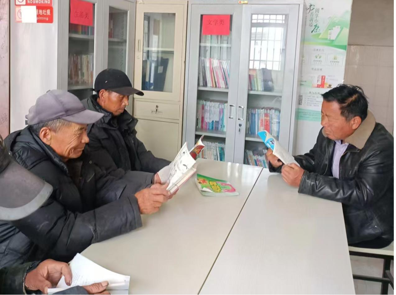 活动现场,镇文化站开放丰富的图书资源,涵盖养生保健、历史传记、农业技术等类别,老年学员们或围坐共读,或戴上老花镜独自沉浸书海,不时交流读书心得。针对老年群体特点,葛集镇推出“银龄故事会”“亲子共读”等特色活动。老年学校工作人员用方言解读经典名著,老人分享自身经历与书中故事的共鸣;亲子共读环节中,祖孙结对阅读,促进家庭情感交流。此外,葛集镇还在文化广场、村口宣传栏张贴阅读标语,组织志愿者入户发放阅读倡议书。
