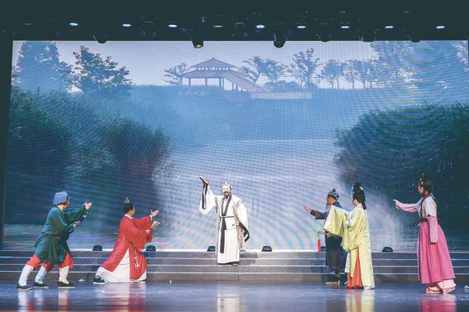 图为泗州戏《米芾沉砚》在北京市丰台区文化馆展演。赵贤军 摄
