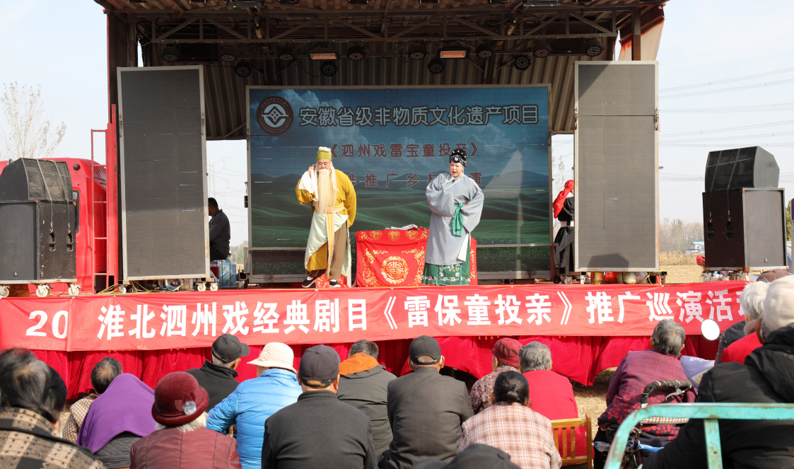 当日,安徽省非物质文化遗产项目——淮北泗州戏经典剧目《雷保童投亲》复排推广巡演,在濉溪县大戏楼启幕。本次复排由省级非遗传承人刘素侠领衔,市级非遗传承人刘景、程素侠担纲主演。复排在保留原剧精髓基础上,融入现代舞台美学,计划在皖北地区开展20场巡回演出。