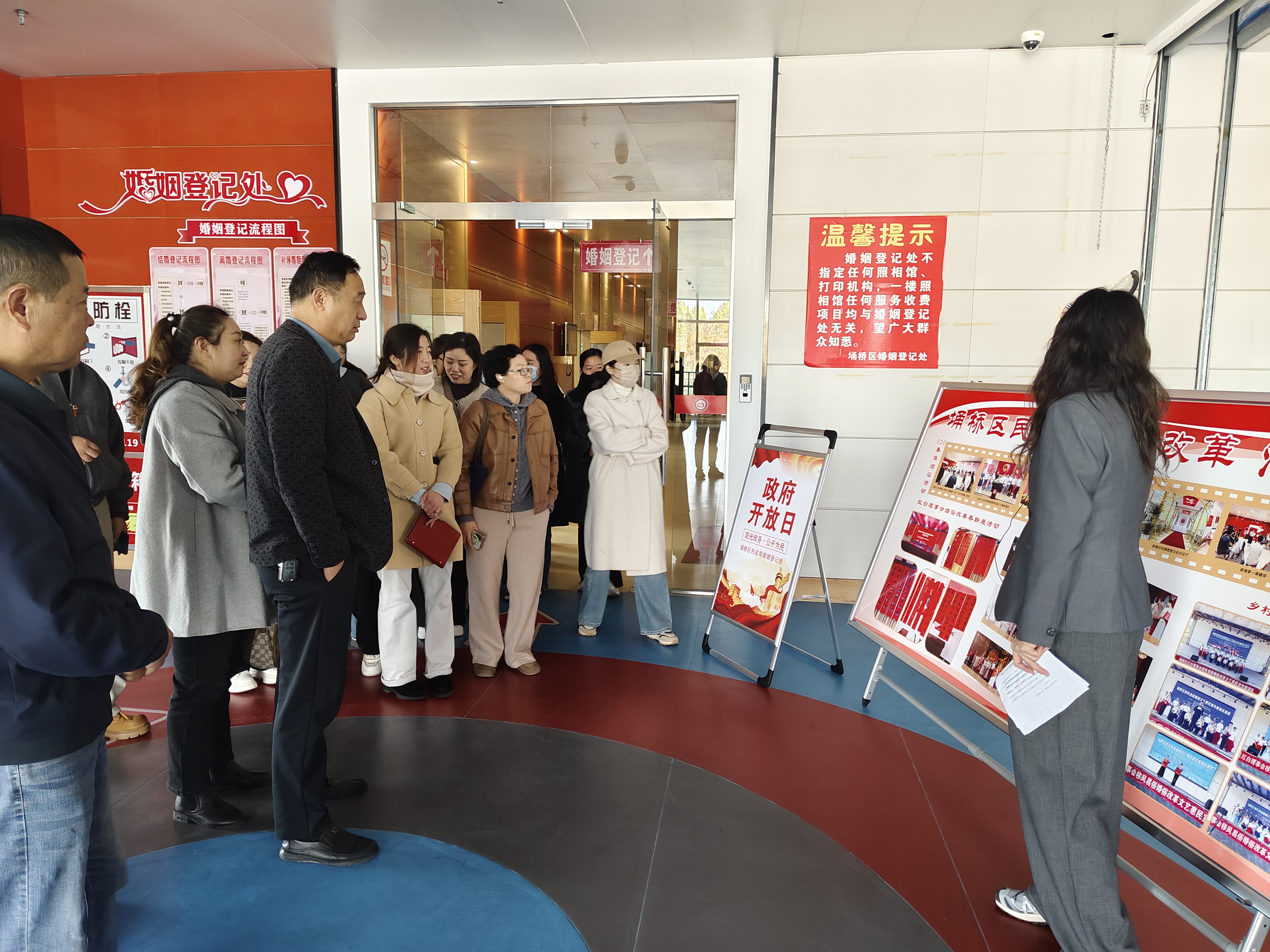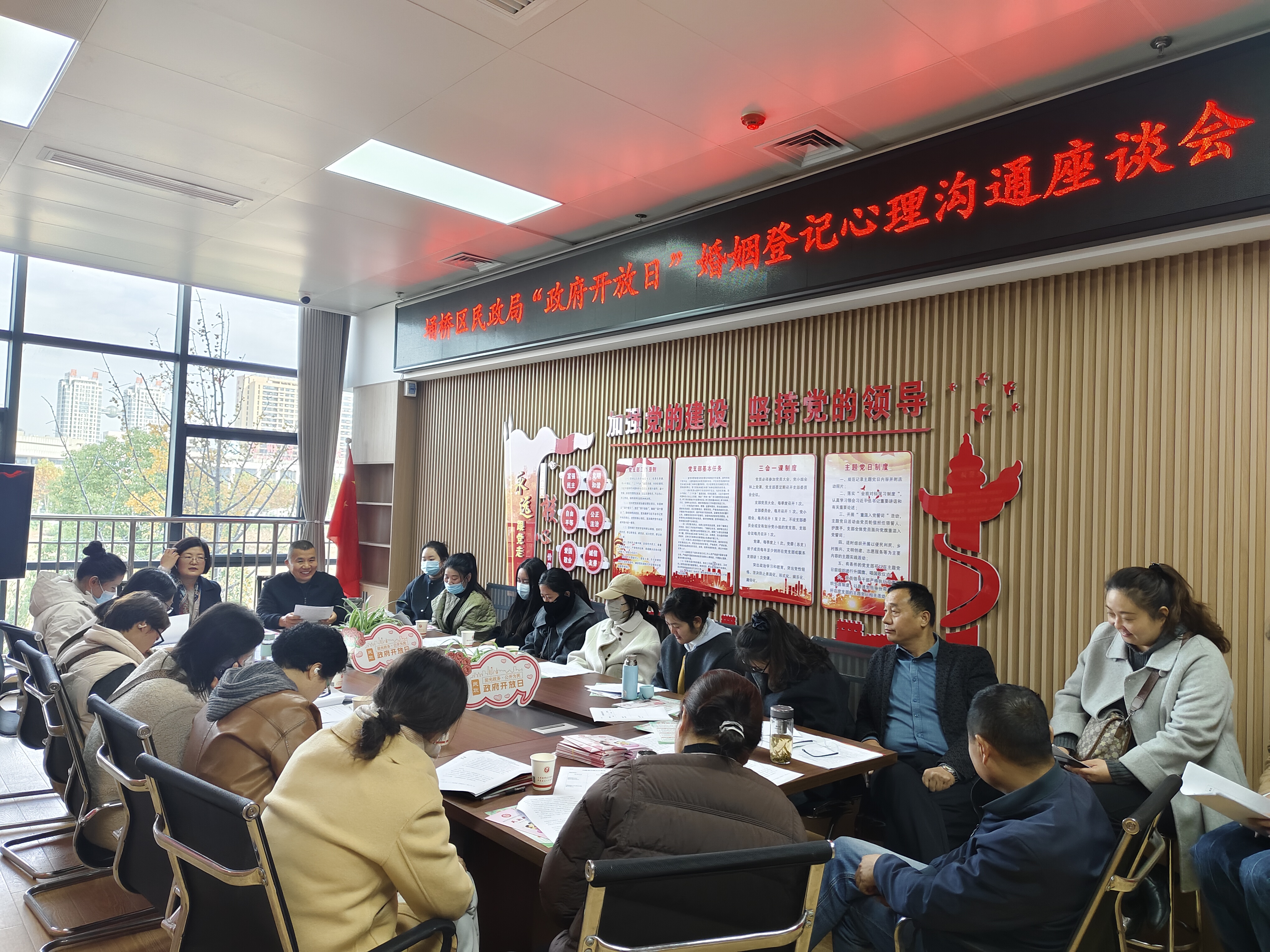 为进一步提升政务服务水平、促进政务公开,推进阳光、透明、开放、服务型政府建设,提升婚姻登记服务质量,11月11日,宿州市埇桥区民政局在婚姻登记处举办“爱在埇桥 服务零距离”政府开放日活动,邀请社区网格员、居民群众等通过观摩、座谈会等方式,近距离感受婚姻登记工作,了解婚姻登记办事流程,提升政府工作透明度与公信力。