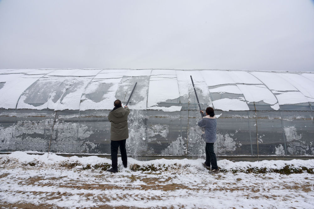 (镇分管同志到任屯产业园指导帮助经营主体清理大棚积雪)