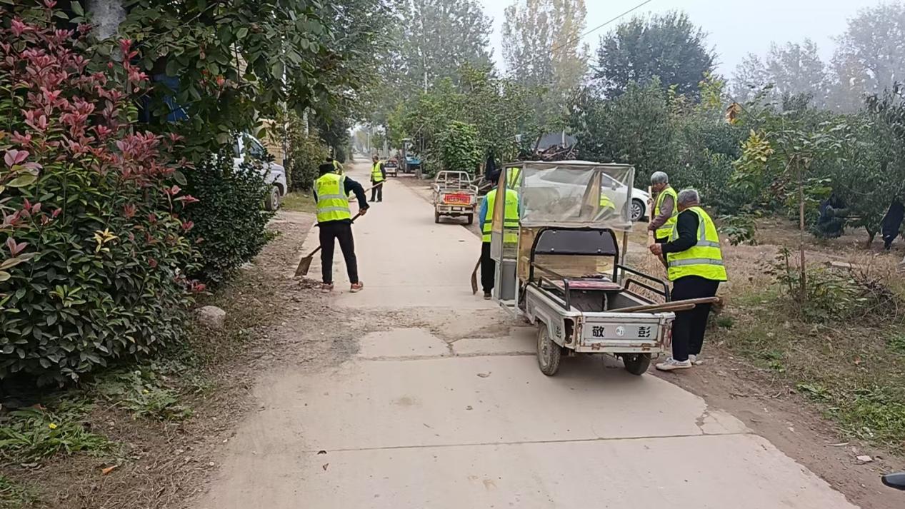 在整治现场,身着反光背心的保洁人员手持扫帚、铁锹等工具,对村内主次干道的落叶、杂物、积存垃圾进行“拉网式”清扫,同步清理道路两侧杂草与乱堆乱放物品,并通过电动三轮车及时转运垃圾,确保路面整洁、无卫生死角。从清晨到午后,保洁人员分工协作,原本略显杂乱的村道逐渐恢复干净有序,不少村民驻足点赞:“路干净了,看着心里都敞亮!”