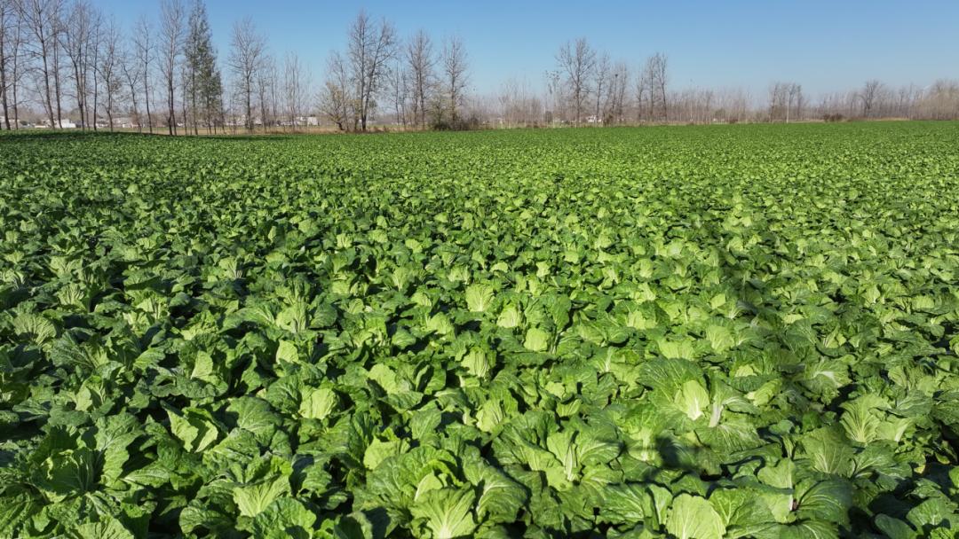 11月25日,记者来到宿州市埇桥区桃沟镇,这里的白菜地绿油油的一望无际,棵棵白菜饱满瓷实,在初冬的阳光下焕发着勃勃生机。