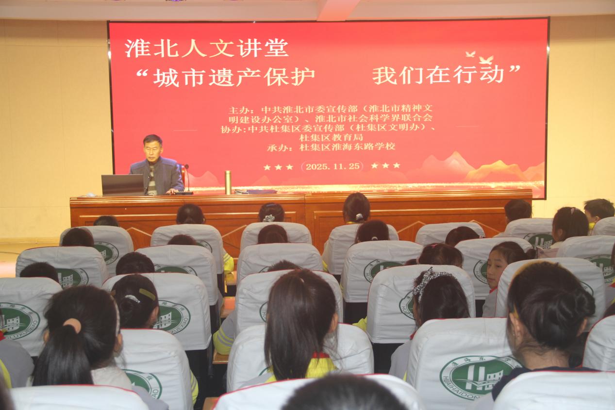当隋唐运河的涛声穿越千年,当明清古建的砖瓦映照晨光,文化遗产始终是淮北最深厚的城市印记与精神根基。近日,由淮北市委宣传部(市文明办)、市社科联主办,杜集区委宣传部(区文明办)、区教育局协办,杜集区淮海东路学校承办的淮北人文讲堂“城市遗产保护 我们在行动”主题文明实践活动如期举行,以知识传播凝聚保护共识,用实践行动守护文化根脉。