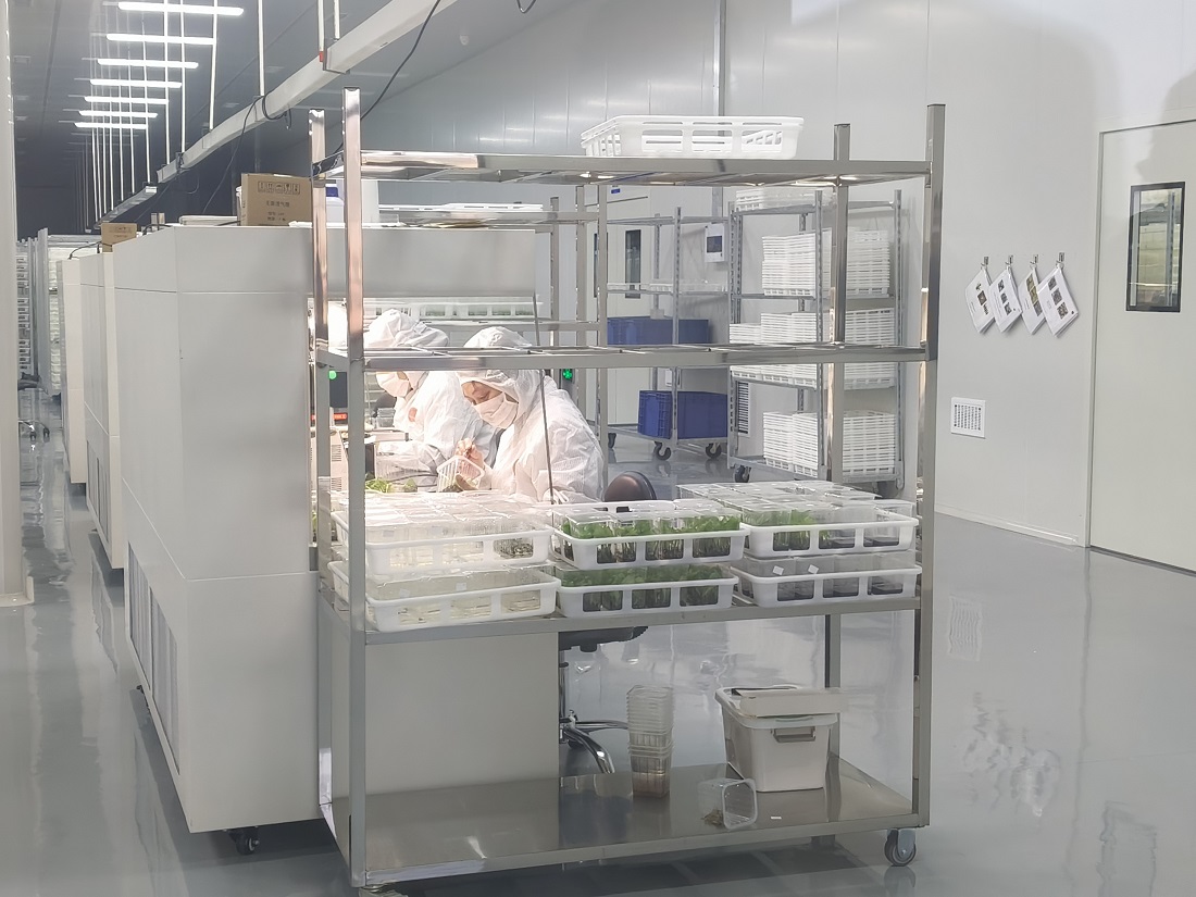 “我们选取的是植物顶端仅1毫米内的生长点,这里是病毒的‘禁区’。”项目副总经理汤卫国介绍。这位从上海来到泗县的专家,如今负责这座外资科创中心的日常运营。“通过技术手段,我们将这个无病毒的‘生命原点’在无菌环境中培育成苗,从源头上解决了传统地栽种苗携带病毒、导致品种退化的难题。”