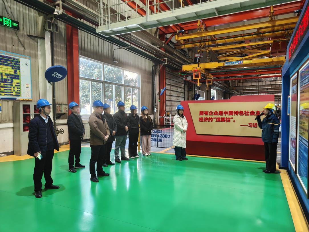 在徐工集团生产车间,一行人认真学习企业在精细化管理、科技创新方面的特色做法,对其完善的质量管理体系和高效的生产运营模式表示赞赏。