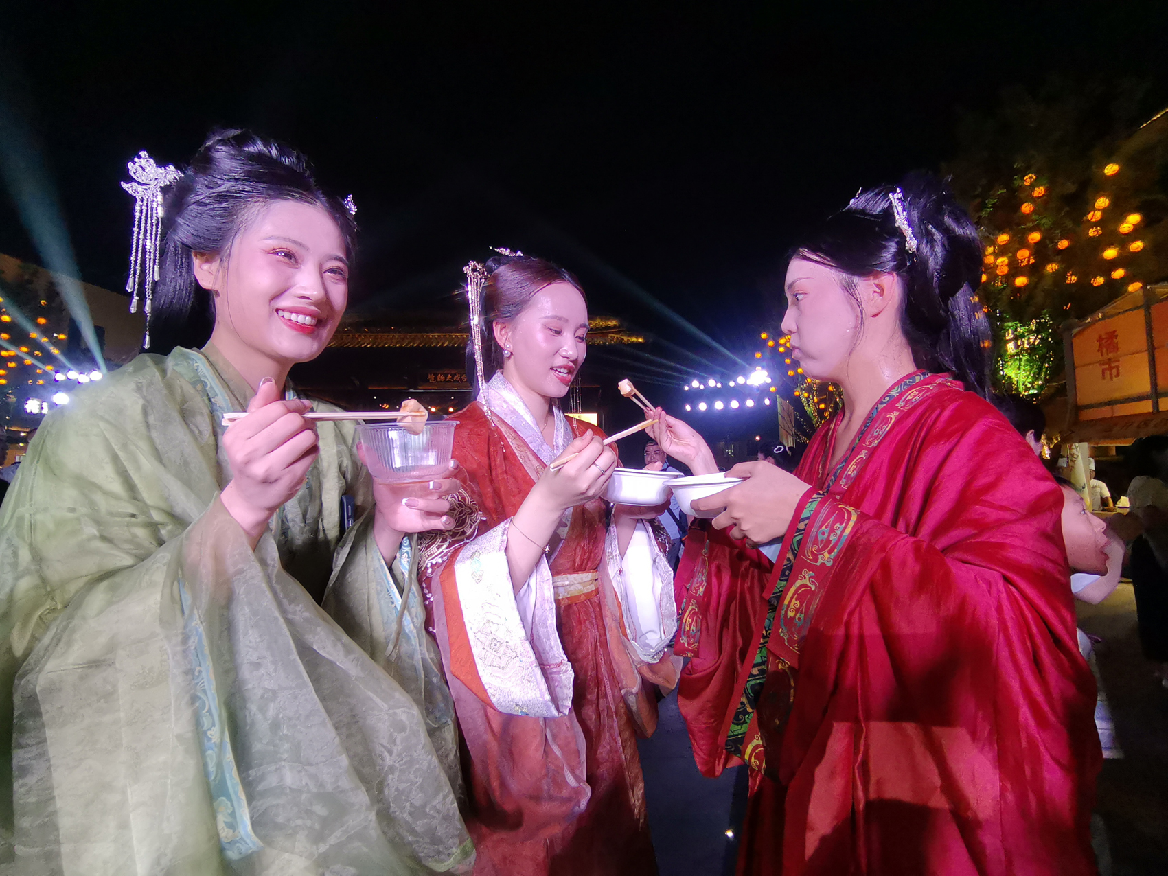 此外,活动现场还设置了多个特色环节,“鼎沸千年”万名市民免费共品淮南牛肉汤活动。以及燃鼎仪式,NPC淮南王邀请10位厨师长一同点燃火炬,宣布选拔赛正式开始。淮望阁二楼民乐齐鸣,演出画面同步投影到街区大屏,营造“戏彩萱堂”的盛况。同时还有豆腐宴展示专区,非遗传承人现场表演豆腐宴制作技艺。窑火淬“金碗” 、辞辩春申君等活动打卡互动点,集中展示豆腐宴菜品,全方位展现了淮南的饮食文化魅力 。