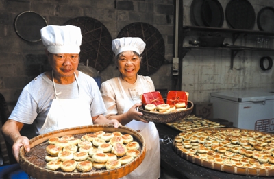 临近中秋,在安徽省休宁县有着1700多年历史的万安老街内,古徽州制饼手艺人程贵生一家经过“制油酥、擀面皮、包馅、固形、盖印和烘烤”等多道古法手工工序后,制作出外酥里糯、口感鲜美的“徽式麻仁月饼”,深受老百姓的喜爱,是古徽州中秋佳节传统糕点。