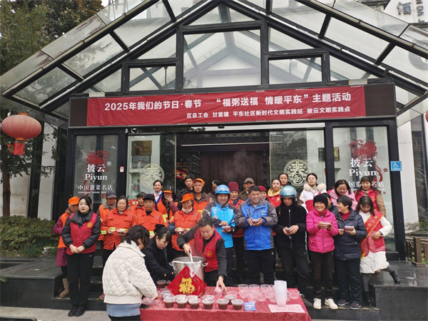 “福粥送福,情暖平东”。在党建引领带动下,非公披云餐饮党支部为此次活动精心熬制了热气腾腾的美味福粥。活动现场,社区党总支书记与志愿者们在党员的引导下,把一碗碗充满温暖与关爱的福粥送到困难党员、群众、残疾人以及户外工作者等特殊群体居民手中。同时,社区党员志愿者们还开展了上门送福粥的活动,他们带着打包好的福粥,来到出门不便的老党员和孤寡老人家中。当老党员和孤寡老人接过福粥时,眼中满是感动与欣慰,这一碗碗福粥不仅驱散了冬日的寒气,更传递着社区党组织对他们的深切关怀,让他们在寒冷的冬日里切实感受到党的关怀和社区的温暖,内心满是暖意。