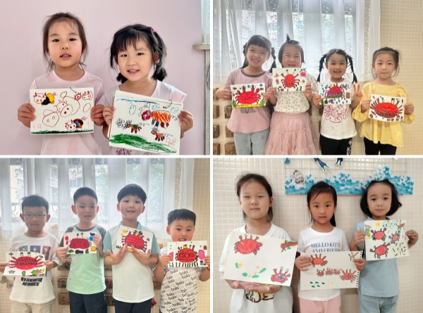 孩子们挥动画笔,创作出一幅幅充满童趣的《秋牛图》和肥美的《秋螃蟹》,表达对“送秋牛”的节气祝愿和丰收的喜悦。