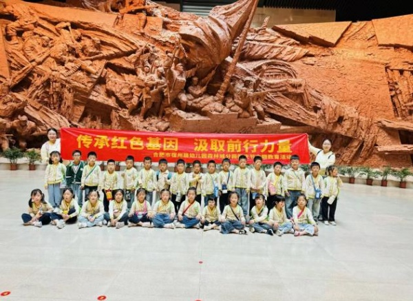 在行军体验中,孩子们背起小水壶,挥动小国旗,沿纪念馆外“胜利步道”徒步体验。尽管路途不短,但孩子们步伐坚定,亲身感受了解放军行军的不易,锻炼了意志品质。大班幼儿在行走的课堂中感知历史、锤炼品格,激发了“我是中国娃”的自豪与担当,也在他们心中深植下热爱祖国、勇于担当的种子。