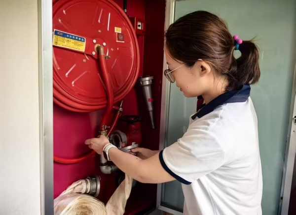安全小组认真、仔细地查看了灭火器、消防栓、应急照明灯、疏散指示灯、微型消防站等消防设施设备,并查看各电器线路和设备是否正常,确保消防安全工作扎实推进。
