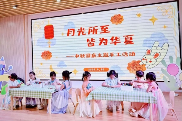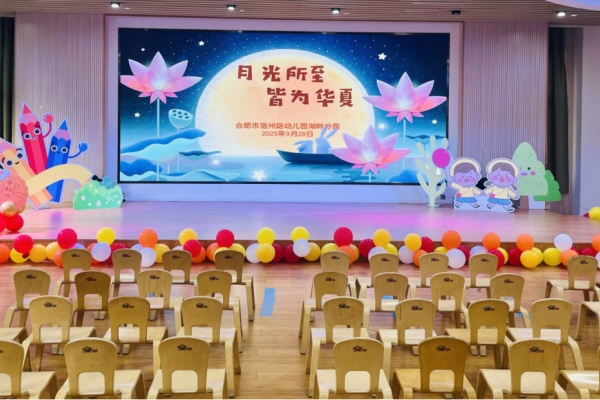 时序更迭,秋意渐浓。当银辉轻洒的中秋佳节与举国欢庆的国庆盛典美好相逢。合肥市宿州路幼儿园湖畔分园于2025年9月28日举办了一场别开生面的中秋国庆庆祝活动。此次活动以“悦”“月”“阅”为核心脉络,巧妙融合中秋“团圆思念”的温情意蕴与国庆“家国欢腾”的红色底色,为孩子们带来了一场沉浸式的节日体验,于童真童趣间播撒下文化传承与家国情怀的种子。
