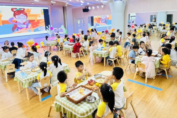 中秋节自古便有赏月、吃月饼、等民俗,流传至今,经久不息。在听完《小猪卖月饼》的故事,欣赏完《红红的小挎包》情景剧后,一场“月光茶话会”正温馨上演。看,幼儿园为孩子们准备了丰富的自助餐,全园的孩子们欢聚一堂,乐开席!豆沙的绵密、莲蓉的清甜与石榴的晶莹交织成秋日盛宴,孩子们手捧月饼轻声分享:"我的月饼给你尝一口",稚嫩话语中流淌着分享的喜悦,这场味觉盛宴也让中秋的甜蜜浸润舌尖。