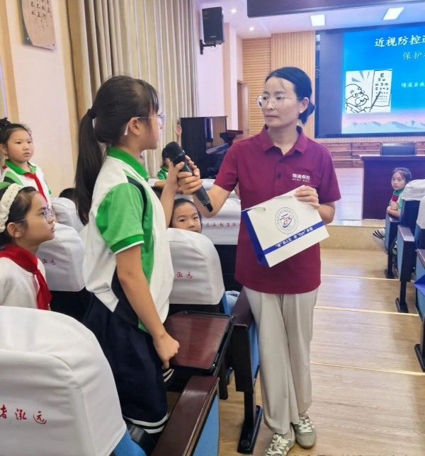 为了让知识更加入脑入心,讲座中还穿插了趣味十足的有奖问答环节。同学们在专家的指导下,积极参与,现场气氛热烈。这种寓教于乐的方式,让“保护视力,爱护眼睛”的理念不再是枯燥的说教,而是成为了同学们乐于接受和践行的行为准则。