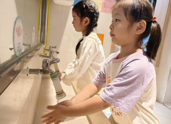 各班在一日活动中注重幼儿良好卫生习惯的养成,在日常生活活动中渗透“七步洗手法”、饭后漱口擦嘴、打喷嚏以及咳嗽的正确方式等知识,并在教师日常的指导帮助下形成稳定的生活、卫生习惯。