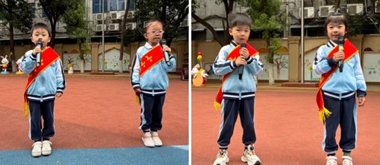 汪弈然小朋友和李西贝小朋友进行国旗下讲话以《珍惜粮食,从点滴做起》为主题,小朋友,要注意,吃饭不能掉饭粒。一粒米饭一滴汗,粮食来得不容易。小朋友,在成长,若挑食,缺营养。瓜果菜,都品尝,食五谷,身体棒。希望小朋友们从现在做起,节约每一粒米,每一份菜。