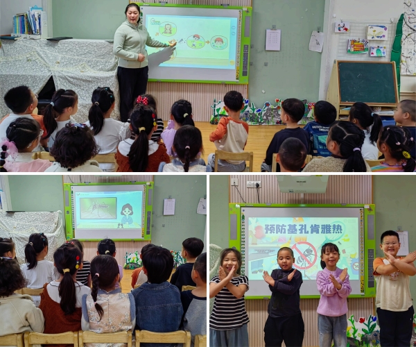 班级开展了 “基孔肯雅热防控安全教育小课堂”,教师用孩子们易懂的语言、生动的图片和动画以及手指游戏等形式,讲解基孔肯雅热的传播途径、典型症状及防护方法,让孩子们在了解病毒危害的同时,掌握科学的自我保护技能。
