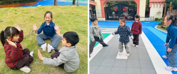 大班的孩子们则化身“时光小使者”,穿上怀旧服饰,体验祖辈的童年游戏。跳皮筋、翻花绳,欢声笑语中,他们触摸到那段虽物质匮乏却快乐丰盈的岁月。时光虽远,童心相通,这份跨越年代的共鸣,让理解与敬爱在游戏中悄然生根。