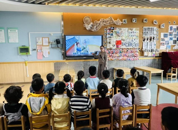 在大五班“墨染登高序”活动中,教师以重阳登高的传说为引导,通过故事讲述和山景图片欣赏,激发幼儿对“登高”场景的想象。