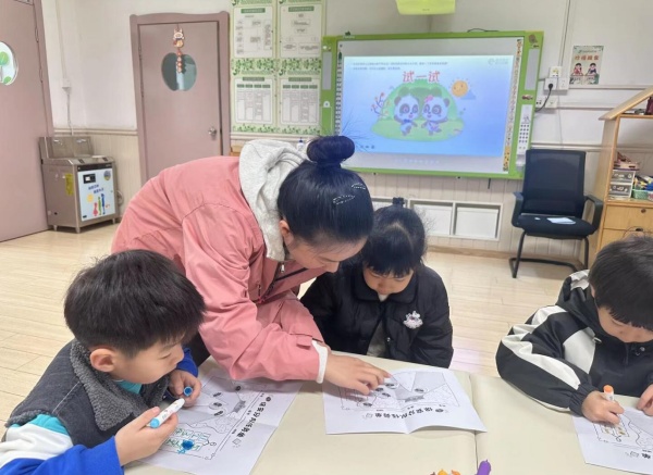 公开课观摩活动中,教师们聚焦语言、数学、美术等领域展开。幼儿的数学学习是生活化、情境化的,沈老师执教的大班数学活动《6的分合》以游戏化的教学方式,引导幼儿在操作与探索中理解数的组成与分解,激发了孩子们的逻辑思维与动手能力。王老师执教的小班数学《方块小兔过生日》活动中,教师巧妙创设了“为小兔准备礼物”的游戏情境,孩子们在辨认、匹配和送礼物的过程中,自然而然地感知了图形的特征,锻炼了手眼协调能力。