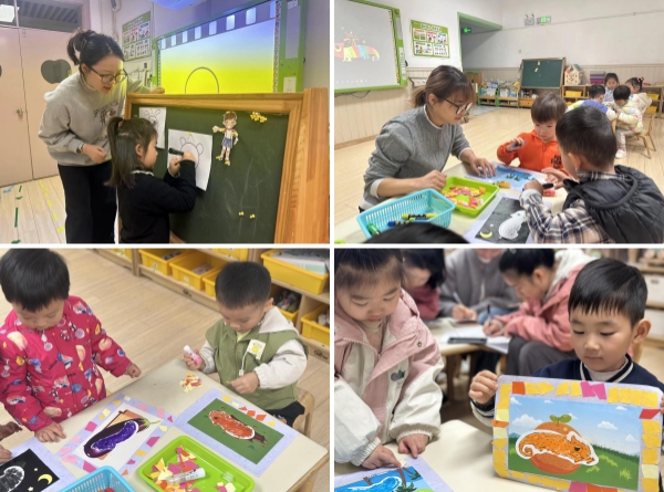 中班美术活动《小兔照相馆》中,孩子们在轻松愉快的氛围中,用画笔记录下“小兔”的可爱瞬间,充分发挥了想象力与创造力。小班美术《多彩的变色龙》中,两位老师根据各班幼儿的年龄特点,通过色彩、形状与故事的结合,引导幼儿感知颜色的变化与世界的多彩,课堂氛围活跃,幼儿参与积极。