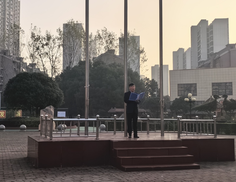 升旗仪式后,信息工程学院院长郭玉堂发表讲话。他围绕“星青年”的内涵与时代使命展开阐述,勉励全体学子以“星”为鉴,胸怀“国之大者”,将个人理想融入国家发展大局;以“行”为基,扎实学好专业知识,锤炼过硬本领,在信息科技领域勇攀高峰;以“德”为先,传承优良品德,践行社会主义核心价值观,争做有理想、敢担当、能吃苦、肯奋斗的新时代好青年。郭玉堂院长的讲话言辞恳切、催人奋进,为在场学子指明了努力方向。