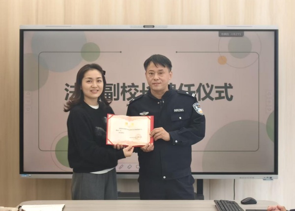 活动伊始,聘任仪式在庄严的氛围中拉开帷幕。后勤工作负责人甄庆庆老师为章韧警官颁发法治副校长聘书,接过聘书的同时,也接过了“护佑萌娃安全成长”的责任。甄老师在致辞中表示:“法治副校长的加入,是警园联动的新起点,期待专业力量为园所安全注入更精准的防护智慧。”章韧警官也承诺:将以专业知识为依托,常态化参与园所安全建设,共筑平安校园。