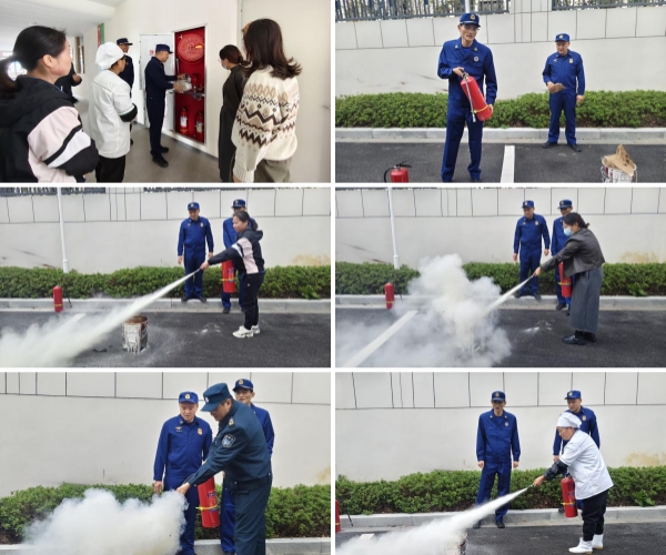 在消防实操培训环节,刘队长聚焦消防水管拼接与干粉灭火器使用开展专项教学。针对消防水管拼接,刘队长从接口识别、密封垫安装,到快速对准接口、拧紧固定卡扣,一步步拆解操作流程,强调“快、准、稳”的核心要求,提醒教职工注意接口密封防漏水、水管铺设避开障碍物等关键细节。对于干粉灭火器使用,刘队长现场演示“提、拔、握、压”四步操作法,结合初期火灾模拟场景,讲解灭火器的适用范围、喷射角度等注意事项,组织教职工轮流实操灭火,直至每位教职工都能熟练掌握操作技巧。