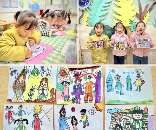 孩子们化身“小小宣传员”,用画笔来绘制防欺凌宣传画。每一幅画作,都是孩子们对“零欺凌”世界的真诚向往。有的画了小伙伴手拉手一起玩,有的画了“不推挤、不嘲笑”的标语,还有的画了自己帮助受欺负小朋友的场景。