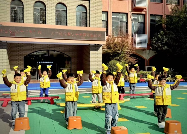 随后,大二班的小朋友们带来了精彩的表演,为本次升旗仪式增添了更多活力。首先大二班的小女生们举起可爱的小雨伞,带来舞蹈《下雨啦》,她们用灵动的身姿、甜美的笑容,宛如雨中嬉戏的小精灵,用灵动的舞姿提醒大家冬季雨雪天气要注意出行安全,紧接着登场的是大二班的小男生们带来的杯子舞表演,随着欢快的节奏,孩子们手中的杯子,翻转跳跃,清脆的声响与整齐的动作相映成趣,仿佛冬日里跳动的暖阳,传递着满满的活力与热情。