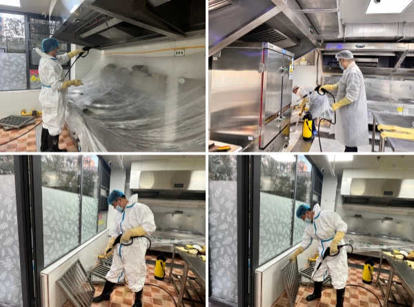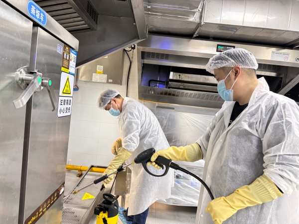 工作人员对幼儿园食堂进行了全方位油烟管道清洁。清洗时,他们熟练运用专业设备,依次拆解清洗灶具、排油烟口、管道转角等部位,重点攻坚烟道内部、转角等隐蔽区域的积油,清除油烟机上的顽固污渍,做到清洁无死角。